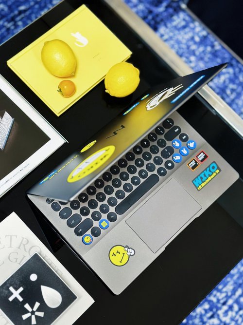 (图源:左右_Zoe) 而真正的点睛之笔,在于WIKO Hi MateBook 14与SmileyWorld的跨界联名。附赠的经典黄色笑脸贴纸,让个性化创造变得触手可及。无论是装饰A面彰显态度,还是点缀在C面功能键上增添趣味,都让这台笔记本从标准化产品,转变为充满个人印记的独特存在。在社交平台上,这种充满巧思的分享,也让WIKO Hi MateBook 14成为了连接同好、分享生活趣味的时尚话题中的常客。 光有好看的皮囊当然不行,有趣的灵魂更需要硬核实力支撑。点亮WIKO Hi MateBook 14屏幕的瞬间,便能体会何为“越级体验”。这块14.2英寸的2.8K OLED屏,以其2880×1920的超高分辨率,显示清晰细腻通透——看文档时,文字的边缘像被重新描过;修图时,色彩的过渡和明暗细节分毫毕现。3:2的黄金屏幕比例,在浏览文档或网页时,能一屏显示更多纵向内容,有效减少频繁滚动,让专注力更持久。120Hz的高刷新率加持下,则让每一次网页滚动与窗口切换都如丝般顺滑,用惯了真的就回不去了。