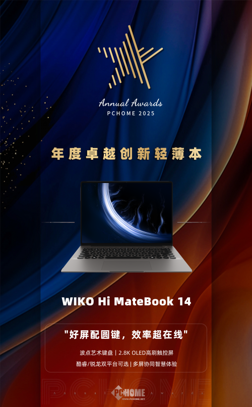 岁末年初,WIKO Hi MateBook 14迎来“奖项大满贯”——在接连收获PConline「年度卓越设计」与中关村在线「年度优质轻薄本」的权威肯定后,于2025年12月31日,被电脑之家正式授予「年度卓越创新轻薄本」称号。电脑之家在颁奖评语中指出,WIKO Hi MateBook 14的获奖源于其在“设计美学、核心体验与智慧生态三个维度的综合创新”,系统化的设计创新令其成功“跳脱传统笔记本的刻板框架,实现美学、功能与情感价值的统一与进化”。